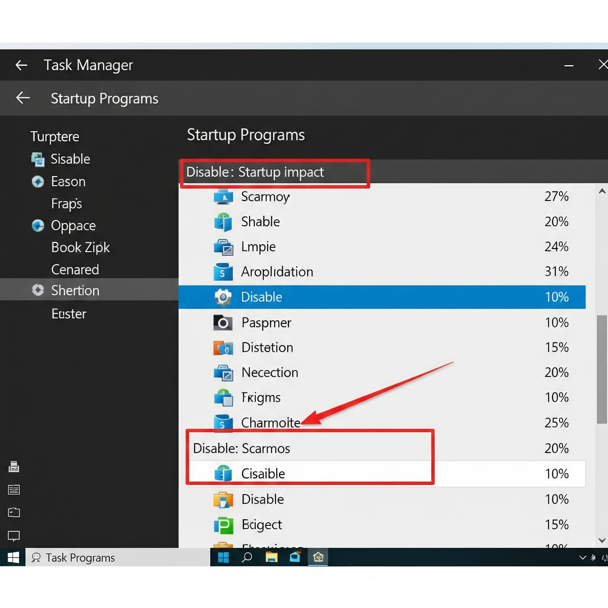• 상단 메뉴에서 ‘시작 프로그램’ 탭 클릭